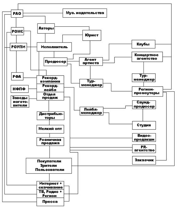 СОДЕРЖАНИЕ Содержание…………………………………….……....….…1 стр. Введение………………………………………..….…...…….2 стр. Менеджмент шоу-бизнеса……………..…………….…..….5 стр. Продюсер и его деятельность ………………………………9 стр. Этические нормы…………………………………….…..….13 стр. Фандрайзинг и финансовый менеджмент…………….…...16 стр. Заключение………………………………………….……….19 стр. Список используемой литературы…………………....……21 стр. Приложение……………………………………………….…22 стр. ВВЕДЕНИЕ Моя курсовая работа посвящена особенностям менеджмента в шоу-бизнесе. На мой взгляд, выбранная мною тема представляет собой актуальную проблему для менеджмента в целом и для меня как изучающего менеджмент организации в частности. Хотелось бы подчеркнуть то, что шоу-бизнес является закрытой сферой деятельности, и именно по этому так интересно узнать то, чем живут и как работают люди, связанные с профессиями, востребованными в сфере музыкального производства. В данной работе мне хотелось бы затронуть следующие вопросы Что такое шоу-бизнес? По каким принципам строится организация в этой сфере? Кто задействован и работает на музыкальном производстве? Какова в этом роль продюсера? Что лежит в основе менеджмента индустрии развлечении? В шоу-бизнесе не любят делиться информацией. В этот мир нельзя войти, не зная его структуры, правил игры, технологий, тайн, устоявшихся схем. Уникальность моей работы заключается в том, что её основу составляет информация, полученная и взятая из текстов интервью и книг специалистов в области индустрии развлечений. Своевременность работы заключается в том, что она призвана разобраться в непростых лабиринтах одного из самых сложных и интересных видов бизнеса, набирающего силу в нашей стране. Главной целью этой работы является ознакомление с принципами организации деловых и человеческих отношений в индустрии развлечений, которая развивается семимильными шагами. Помимо ответа на вышеперечисленные вопросы, в задачи этой работы входит задача выработать понимание особенностей шоу-бизнеса и их возможное применение в дальнейшей профессиональной деятельности. Работа дает общее представление о структуре отечественного шоу-бизнеса и шоу-бизнеса в целом, раскрывает правовые, экономические, творческо-психологические аспекты взаимоотношений между людьми, работающими на благо индустрии развлечений. Она дает представление и описывает процесс рекламной кампании и стратегии работ управленческих структур. Также она снабжена справочным материалом, необходимыми телефонами и адресами, которые можно найти в приложении к моей курсовой работе. Шоу-бизнес как понятие появилось в специальной литературе сравнительно недавно-с середины 80-х годов и заменило существовавшее ранее: ”советская эстрада”. Сам термин ”эстрада” возник в отечественном искусствознании в начале 20 века и объединял все разновидности искусства легко воспринимаемых жанров. Понятие ”эстрада” существует только у нас. За рубежом в Западной Европе и Америке, - это мюзик-холлы, варьете, кабаре, шоу и т.д. Эстрадному искусству свойственны такие качества, как открытость, лаконизм, импровизация, праздничность, оригинальность, зрелищность. Развивая как искусство праздничного досуга, эстрада всегда стремилась к необычности и разнообразию. Само ощущение праздничности с