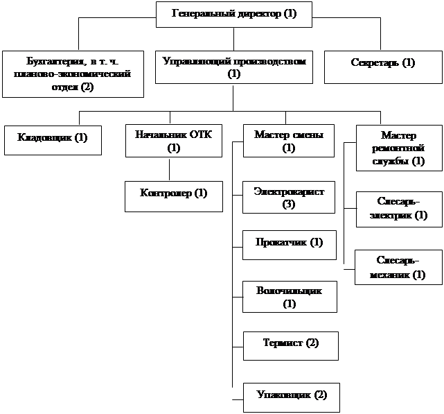 3.Расчет фонда оплаты труда (ФОТ) Организационная структура управления предприятием представлена на рисунке 1 (в скобках указано число работающих).