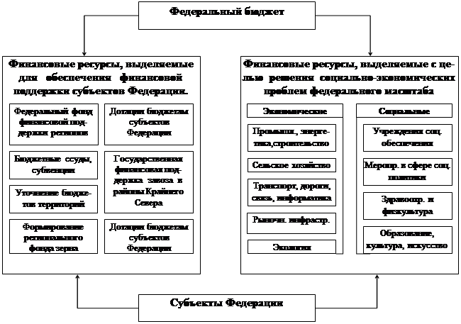 Рис. 2.3 Диаграмма финансовой поддержки регионов, реально выделенной через ФФПР, % запланированного объема По типовому варианту соглашения (в конкретных соглашениях отдельные пункты скорректированы) регионы должны увеличить денежное наполнение бюджета, сократить долю зачетных форм по регулирующим федеральным налогам в 1998 г. и отказаться от них полностью в 1999 г. Кроме того, администрации субъектов Федерации обязались провести реструктуризацию задолженности юридических лиц перед своими бюджетами с предоставлением отсрочки на 4 года по налогам и сборам, на 10 лет - по штрафам и пеням. Условием реструктуризации является своевременное и полное погашение текущих платежей. Регионы также должны сократить свои бюджетные расходы; привести условия оплаты труда работников бюджетной сферы в соответствие с Единой тарифной сеткой и нормативными актами (т.е. снять необеспеченные региональные льготы и надбавки); привести тарифы ЖКХ в соответствие с федеральными стандартами; установить лимиты по электро- и теплоэнергии для организаций-бюджетополучателей; сократить перекрестное субсидирование по энергетике и транспорту. Есть и другие ограничения - по реализации инвестиционных программ (только после выплаты зарплаты), по поддержке предприятий (нельзя поддерживать должников) и по расходам самих администраций. "Приманкой" для согласия регионов на столь радикальные меры послужили ответные обязательства центра. Он предоставил регионам, согласившимся на финансовое оздоровление, отсрочку на погашение беспроцентных ссуд по зарплате за 1997 г. (около 13 млрд рублей), а затем за 1998 г. Кроме того, обращения региональных администраций о предоставлении средств из федерального бюджета теперь будут рассматриваться только в случае, если соглашение заключено и выполняется. Иногда в договоры включалось обязательство центра погасить кредитную задолженность федеральных министерств предприятиям региона. Были предоставлены ссуды на кассовый разрыв, особенно по сельскохозяйственным районам. Некоторым регионам обещана помощь при выплате купонного дохода по областным облигациям. Регионы, особенно прибегавшие к внешним заимствованиям, и сами понимают необходимость оздоровления финансов. Более 60 регионов представили собственные программы финансового оздоровления с конкретным наполнением статей соглашения. Региону, который не выполнит свои обязательства (свертывание зачетных схем и ликвидация неденежных средств в налоговых поступлениях) и не перечислит средства в федеральный бюджет или не вернет ссуды, грозят санкции (приостановка финансирования из федерального бюджета и отказ в предоставлении дополнительной помощи). В этой связи важен переход на финансирование через Федеральное казначейство. Кроме того, министерство будет проводить аудит исполнения региональных бюджетов. Глава 3. Пути и методы совершенствования бюджетной политики и межбюджетных отношений в условиях рыночной экономики3.1 Основные направления бюджетной политики в РоссииРоссийская экономика переживает большие трудности: остановился рост валового внутреннего продукта, продолжается спад инвестиций, уменьшается собираемость налогов и других государственных сборов и платежей, растут расходы по обслуживанию сборов и платежей, растут расходы по обслуживанию внутреннего 