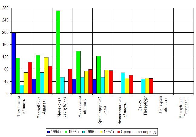Рис. 2.2 Диаграмма доходов, расходов и дефицита консолидированного бюджета, % ВВП Некоторые аналитики не считают катастрофичным размер бюджетного дефицита в России, ссылаясь на то, что многие страны существовали какое-то время с бюджетными дефицитами порядка 5-7% ВВП. Но такой дефицит велик для страны, которая находится в продолжающемся семь лет кризисе при 40-процентном сокращении ВВП и при все еще значительных государственных расходах (за последние семь лет российский ВВП в расчете на душу населения уменьшился на 40%, по уровню душевого ВВП нам сейчас наиболее близки Китай, Албания, Доминиканская Республика, Перу и Парагвай). Еще один важный аспект проблемы - слабость частной финансовой системы, которая не может связать на длительный срок внутренние сбережения и поднять их общий уровень. 2.3 Существующие методики финансовой помощи регионамЧерез Федеральный фонд финансовой поддержки регионов проходит примерно 16,5% всех финансовых ресурсов, перераспределяемых между уровнями бюджетной системы. До принятия "Концепции реформирования межбюджетных отношений" его средства распределялись между субъектами РФ не абсолютными суммами, а долями от всех средств, включенных в ФФПР. Только ленивый не критиковал этот способ дотирования регионов. Попытки переработать методику распределения ФФПР в 1996-1997 гг. закончились провалом. Новые методики были настолько запутаны и оторваны от жизни, что в качестве базового варианта при согласительных процедурах в Госдуме использовались пропорции распределения, разработанные еще в 1995 г. В результате размеры финансовой поддержки определялись не столько экономическими, сколько политическими соображениями. Согласно Концепции в 1998-2001 гг. предстоит перейти к нормативной оценке бюджетных потребностей органов власти и управления разных уровней, соответствующих их расходным полномочиям и ответственности. В 1998 г. разработаны нормативы финансирования расходов на ЖКХ, начальное и общее среднее образование, здравоохранение, государственное управление, выплату пособий семьям, имеющим детей. В 1999 г. должны быть разработаны и утверждены нормативы затрат на финансирование общественного транспорта, правоохранительной деятельности, культуры и другие, необходимые для определения обоснованных бюджетных потребностей субъектов Федерации. С 2000 г. расходы консолидированных бюджетов субъектов Федерации будут полностью оцениваться на нормативной основе. Субъектам рекомендовано не позднее 2001 г. перейти на нормативную оценку потребностей бюджетов муниципальных образований. Общий объем средств ФФПР будет определяться по утверждаемому законодательством на срок не менее 3 лет нормативу отчислений от налоговых поступлений в федеральный бюджет (за исключением ввозных пошлин) исходя из его возможностей. Часть средств ФФПР может выделяться для дополнительной поддержки высокодотационных регионов на основе единой методики формирования и распределения соответствующих средств федерального бюджета. В Концепции предложена такая схема расчета трансфертов ФФПР. Первый этап - определяется душевой доход (собственные доходы и отчисления от регулирующих доходных источников), т.е. доходы консолидированного бюджета на душу населения субъекта РФ (по состоянию на 1 января 1998 г.). При расчете трансфертов на 1999 г. за базу дохо