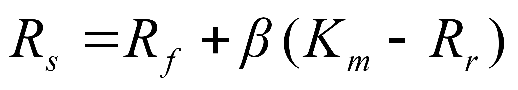 де Rf — безпечна ставка дохідності (звичайно це дохідність за державними короткотерміновими зобов'язаннями); Кm — дохідність ринку (установлюється за допомогою фондових індексів); β — коефіцієнт, який характеризує реакцію (чутливість) акцій на зміну ринкової ситуації;