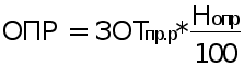 ФОТобщ=ФОТпр.р+ФОТвсп.р+ФОТслуж. (4.3) ФОТобщ= 68 819 235 + 34 022 726 + 166 412 268 = 269 254 229 руб. Нрсэо= 306 884 810 / 269 254 229 * 100 = 113,97 % РСЭО = 381*113,97/100 = 434 руб. б) Рассчитываются общепроизводственные расходы (ОПР) по формуле (4.4).