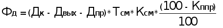 где tшт - время обработки изделия на i-й операции, мин; Фд - действительный фонд времени работы оборудования в расчетном году, час; Пг - годовая программа выпуска изделий по плану, шт. Действительный фонд времени рассчитывают по формуле (1.2).