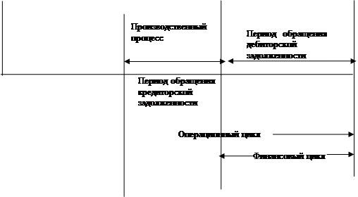 Логика представленной схемы заключается в следующем. Операционный цикл характеризует общее время, в течение которого финансовые ресурсы омертвлены в запасах и дебиторской задолженности. Поскольку предприятие оплачивает счета с временным лагом, время, в течение которого денежные средства отвлечены из оборота, то есть финансовый цикл, меньше на среднее время обращения кредиторской задолженности. Сокращение операционного и финансового циклов в динамике рассматривается как положительная тенденция. Если сокращение операционного цикла может быть сделано за счет ускорения производственного процесса и оборачиваемости дебиторской задолженности, то финансовый цикл может быть сокращен как за счет данных факторов, так и за счет некоторого замедления оборачиваемости кредиторской задолженности. Продолжительность финансового цикла (ПФЦ) в днях оборота рассчитывается по формуле: ПФЦ = ПОЦ – ВОК = ВОЗ + ВОД – ВОК , (5)