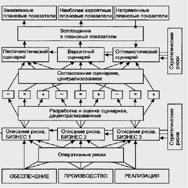 Рис. Схема воплощения рисков в плановые задания (метод сценариев) Приложение Е Таблица. Система оценки степени политического риска