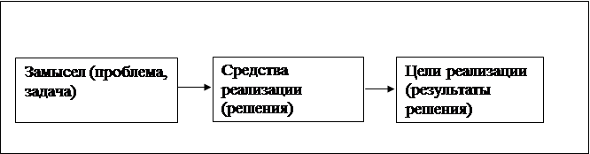 В функции УП входят такие элементы традиционного функционального менеджмента, как: - финансовый менеджмент - обеспечение бюджетных ограничений; - управление персоналом - определение профессионально-квалификационного состава, аппарата управления, мотивация и системы оплаты труда; - операционный (производственный) менеджмент; - логистика (выбор поставщиков, схемы транспортировки, складирования, систем расчетов с поставщиками и т.п.); - инновационный менеджмент - создание нового продукта, инжиниринг; - управление качеством. Системный подход к управлению проектами. Имеет наличии следующих основных элементов: - ограничение масштаба проекта: четкое определение продукта, ограничения по времени и персоналу; - возможность разделения продукта на части: модуляризация по техническим характеристикам, функциям, подсистемам и объектам; - возможность разбиения проекта: выделение команд и групп, разрабатывающих отдельные технические характеристики, поэтапных подпроектов; - создание малых групп и управление ими: большое количество малых производственных групп, обладающих независимостью и ответственностью; - небольшое количество жестких правил, применяемых для усиления координации и синхронизации: ежедневное формирование продукта, немедленный поиск и исправление ошибок, поэтапная стабилизация; - хорошие коммуникации, как внутри команд и функциональных групп, так и между ними: разделение ответственности, открытая культура; - гибкость производственного процесса, необходимая для приспособления к меняющимся условиям: развитие специфических свойств продукта, предусмотрение резервов времени внутри проекта, развитие самого производственного процесса. [ 5 ] Характеризуя проект (рисунок 1.1), можно отметить, что он включает в себя замысел (проблему), средства его реализации (решения проблемы) и получаемые в процессе реализации результаты.