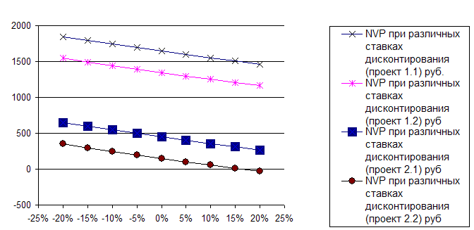 Рисунок 2.1 - Динамика чистого приведенного дохода при вариации ставки дисконтирования
