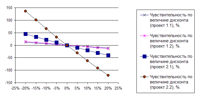 Рисунок 2.3 - Диаграмма чувствительности изменения чистого дисконтированного дохода при изменении ставки дисконтирования