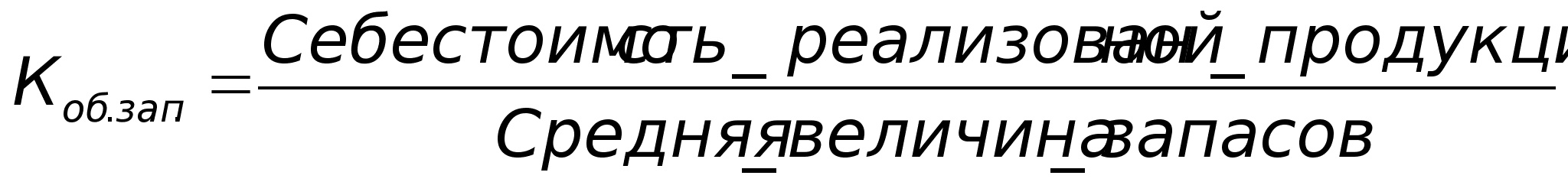 Оценка оборачиваемости товарно-материальных запасов проводится по каждому их виду (производственные запасы, готовая продукция, товары т.д.). Поскольку производственные запасы учитываются по стоимости их заготовления (приобретения), то для расчета коэффициента оборачиваемости запасов используется не выручка от реализации, а себестоимость реализованной продукции. Для оценки скорости оборота запасов используется формула: