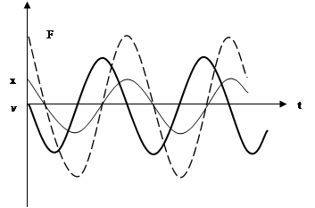 Рис.10. Легко установить, что между смещением, скоростью и действующей силой имеется сдвиг фаз (рис.11).
