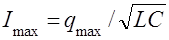 Следует заметить, что уравнение (2) так же следует из закона сохранения энергии. В уравнении (2) i=q' - мгновенное значение силы тока, qmax - максимальный заряд на конденсаторе (он не должен вызвать пробоя). Делаем вывод о зависимости силы тока от величины заряда и находим значение максимальной силы тока: