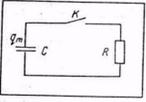Задача3. Придумайте механическую систему, которая была бы аналогична электрической цепи, состоящей из конденсатора емкостью С и резистора сопротивлением R (рис. 5). Первоначальный заряд конденсатора равен qм. Ключ К замыкается в некоторый момент времени принимаемый за начальный.
