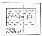 Рис. 5. О т в е т. Электрическую цепь, состоящую из емкости и сопротивления, можно представить как предельный случай электрического колебательного контура, в котором индуктивность настолько мала, что ею можно пренебречь. Поэтому аналогичная механическая система будет представлять собой прикрепленное к пружине (жесткость К) тело с очень малой массой, но с значительным объемом, находящееся в поле действия силы вязкого трения с коэффициентом ß. Задача4. Придумайте механическую динамическую аналогию