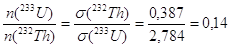 233U: n(232Th) где n(.) - плотность ядер соответствующего изотопа. Сечение деления (233U) = 2,784 барн приведено выше, а сечение захвата нейтрона торием при тех же энергиях (232Th) = 0,387 барн. Отсюда получаем отношение концентраций 233U и 232Th