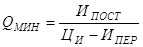 QМИН - минимальный объем продаж, соответствующий точке безубыточности, шт;