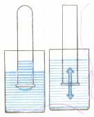 Итак, давление газа на стенки сосуда (и на помещенное в газ тело) вызывается ударами молекул газа. Известно, что молекулы газа беспорядочно движутся. При своем движении они сталкиваются друг с другом, а также со стенками сосуда, в котором находится газ. Молекул в газе много, потому и число их ударов очень велико. Например, число ударов молекул воздуха, находящегося в комнате, на поверхность площадью 1 см2 за 1 с выражается двадцатитрехзначным числом. Хотя сила удара отдельной молекулы мала, но действие всех молекул о стенки сосуда значительно, оно и создает давление газа. Итак, давление газа на стенки сосуда (и на помещенное в газ тело) вызывается ударами молекул газа. При уменьшении объема газа его давление увеличивается, а при увеличении объема давление уменьшается при условии, что масса и температура газа остаются неизменными. -1- Давление, производимое на жидкость или газ, передается без изменения в каждую точку объема жидкости или газа.(закон Паскаля). На основе закона Паскаля легко объяснить следующие опыт.