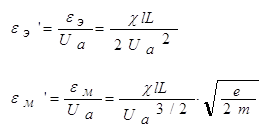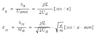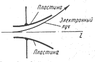 Таким образом, отклонение электрона равно: Выражая скорость V0 электрона через напряжение на аноде, получаем:
