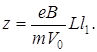 Величина центрального угла a = s/r » l1/r, где s – кривая, по которой движется электрон в поле В. Подставляя сюда значение r, получаем: