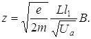 По выходе из магнитного поля электрон продолжает движение по касательной к его криволинейной траектории в точке выхода из поля. Он отклонится от оси трубки на некоторую величину z = L tga. При малых углах a » tg a; z » La.