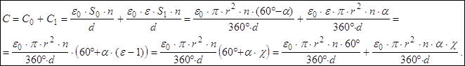 С0 =172пкФ - без диэлектрика; С1 = 411пкФ - стеклотекстолит толстый; С1 = 225пкФ - стеклотекстолит тонкий.