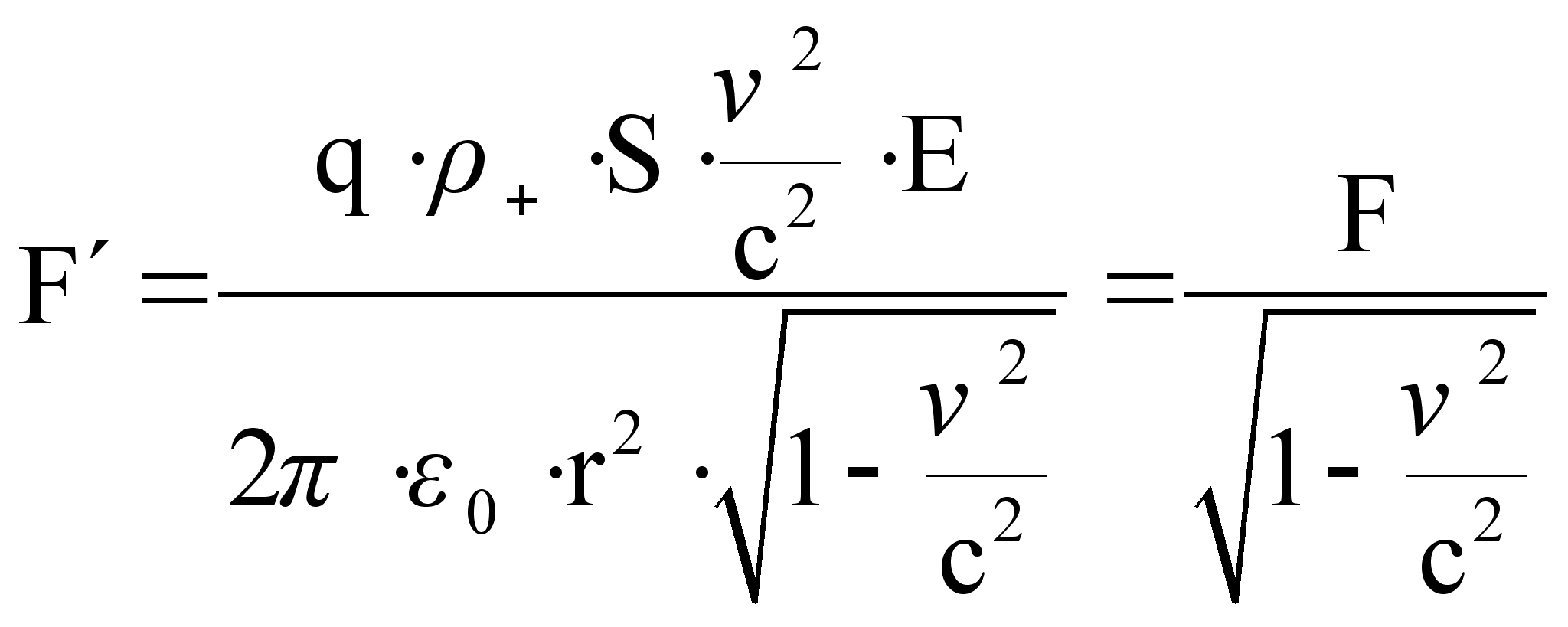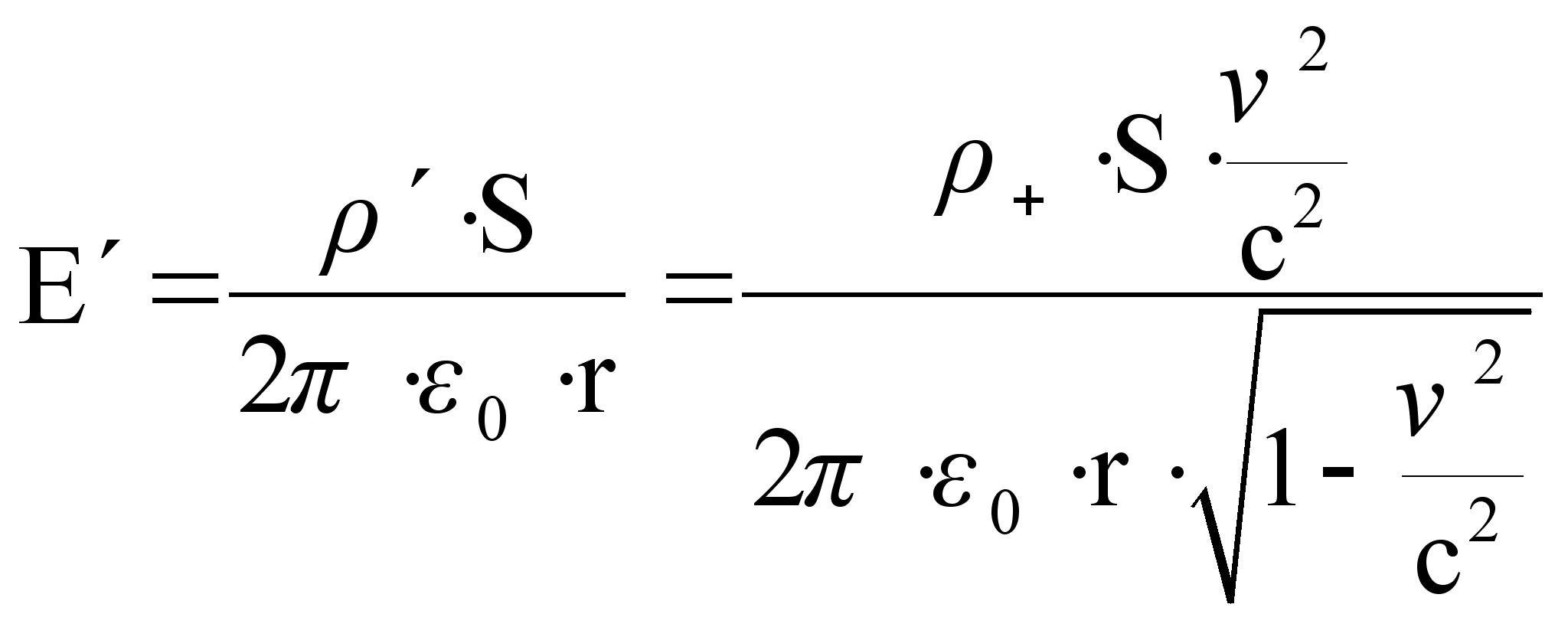 То есть один и тот же результат не зависимо от того, анализируем ли движение летящей заряженной частицы относительно проволоки с током или движение проволоки с током относительно неподвижно заряженной частицы. В первом случае сила была чисто магнитная, во втором случае – чисто электрическая. Если бы взяли другую систему координат, то нашли бы некоторую совокупность электрических и магнитных полей. Электрические и магнитные силы составляют части одного физического явления – электромагнитного взаимодействия частиц. Разделение этого взаимодействия на электрические и магнитные части зависит от системы отсчёта, в которой мы описываем взаимодействие. Но полный электромагнитное описание инвариантно, полностью согласуется с принципом относительности Эйнштейна. Поле движущегося заряда.