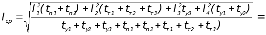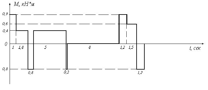 где = 0,7 - коэффициент, учитывающий ухудшение условий охлаждения во время переходных процессов (по [2], стр. 10) Мп - пусковые моменты Мт - тормозные моменты Му - моменты установившихся режимов Все значения моментов берутся из задания. tп - время пусков tт - время тормозных режимов tу - время установившихся режимов Все значения времен берутся также из задания.