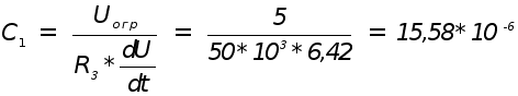 Нужно рассчитать ёмкость конденсатора С1 . Принимаем напряжение ограничения Uогр = 5 В, R3 = 50 кОм.