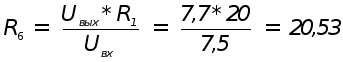 Выход ЗИ при максимальной скорости составляет Uвых = 7,7 В, а напряжение задания Uвх = 7,5 В. Задаваясь сопротивлением R1 = 20 кОм, выбираем сопротивление R6 :