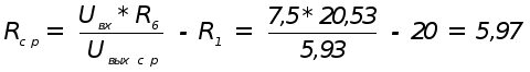 Поскольку кроме минимальной скорости (0,1 м/сек) есть ещё и средняя (0,5 м/сек), то необходимо поделить общее сопротивление R2 на два - сопротивление для получения средней скорости, назовём его Rср и сопротивление R2 в сложении с ним дающее 100,29 кОм. Определим выход датчика скорости (и, соответственно, ЗИ) при средней скорости. nср / nмах ; 527,96 / 687,55 = 0,77; Uвых. ср = Uвых. мах * 0,77 = 7,7*0,77 = 5,93 В По той же формуле определим значение Rср :