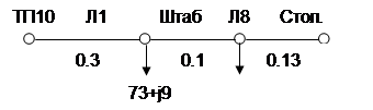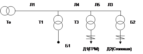 Схема для расчета закона регулирования Все потери в линиях обозначены на рисунке 9. Сечение линий приведены в таблице 6. Отклонения напряжения на линиях питающей подстанции при Imax+7%, при Imin+2%. Потери в высоковольтной линии: до ТП2: ΔUвв max=2,3%; до ТП3: ΔUвв max=3,2%; до ТП10: ΔUвв max=5,6%. Потери низковольтной линии: Д1: ΔUнв max=4%; Д2: ΔUнв max=4,2%. Так как соотношения токов при максимуме и минимуме нагрузки по заданию при Imax/ Imin=3, то чтобы найти потери при минимуме нагрузки, максимальные потери соответственно нужно уменьшить: до ТП2: ΔUвв min=0,77%; до ТП3: ΔUвв min=1,1%; до ТП10: ΔUвв min=1,9%. Д1: ΔUнв min=1,3%; Д2: ΔUнв min=1,4%. ΔUт – в таблице 4 (пункт 8) ΔUнв – при расчете низковольтной сети (пункт 13) Uвых= + 5%+ ΔUвв+ ΔUti+ ΔUнв