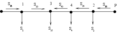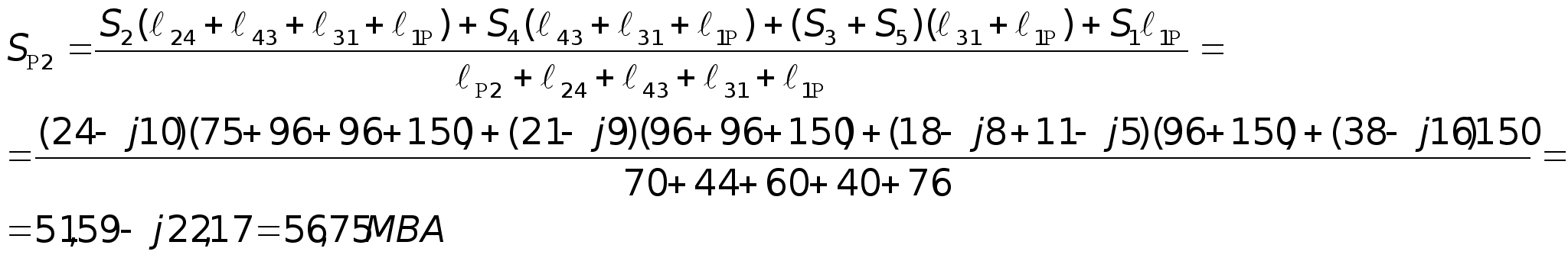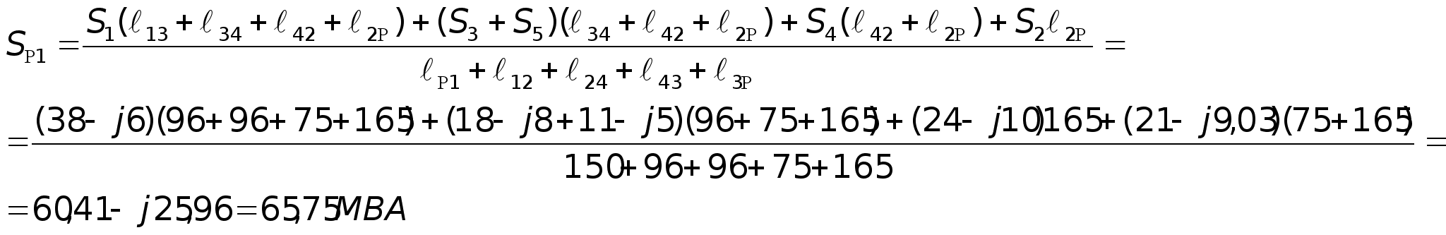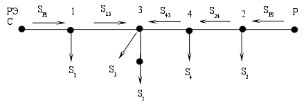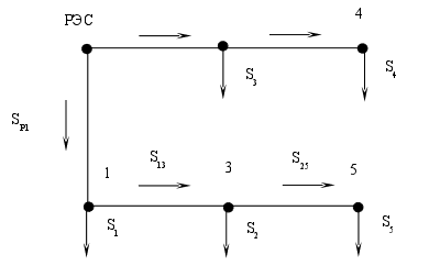 Расстояние между узлами сети От РЭС до подстанции 1=150км От подстанции 1 до 3=96км От подстанции 3 до 5=75км От РЭС до подстанции 2=165км От подстанции 2до 4=75км От подстанции 4 до 5=60км От подстанции 3 до 4=96км Находим мощности на участках
