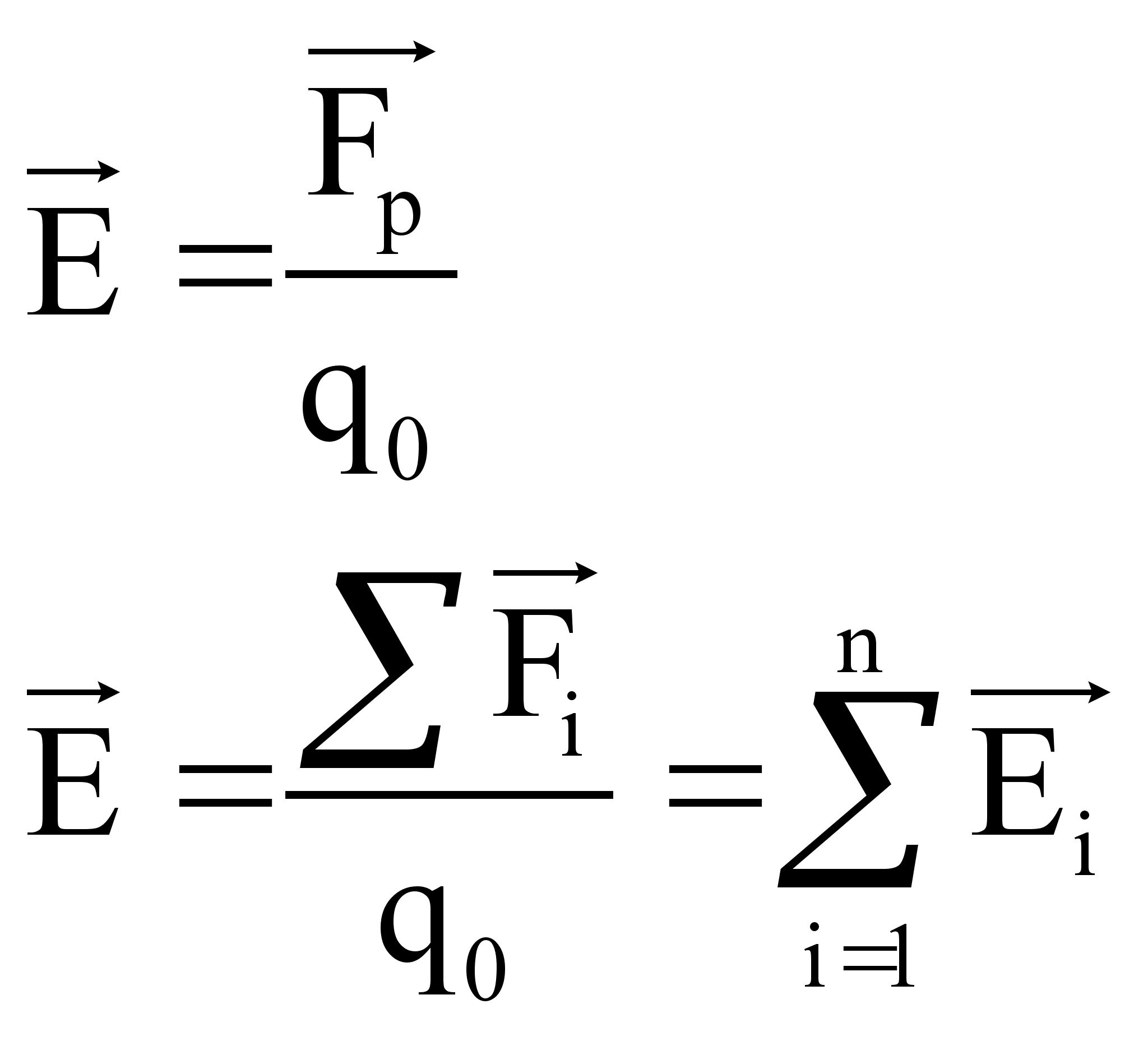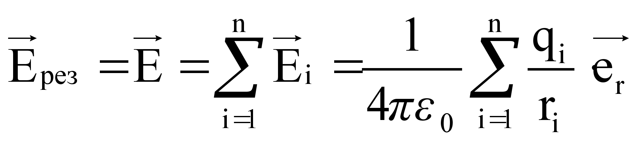 Принцип суперпозиции: напряжённость результирующего поля находится путём определения геометрической суммы простых полей.