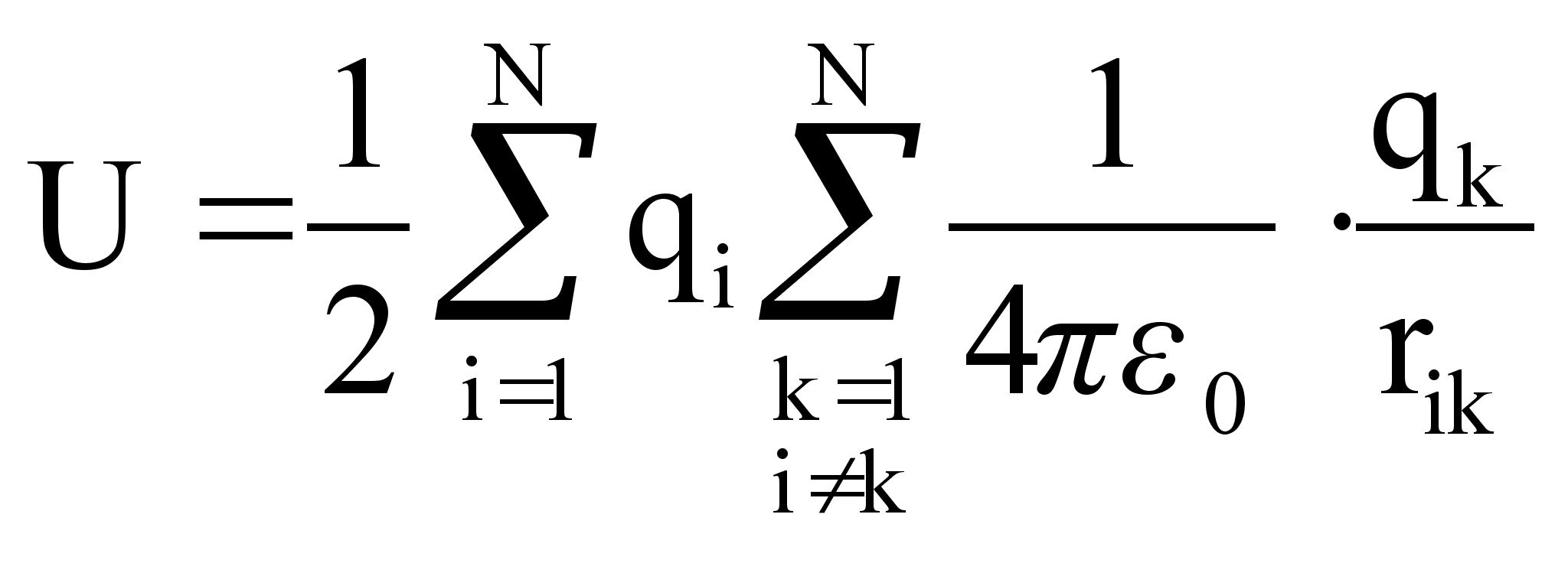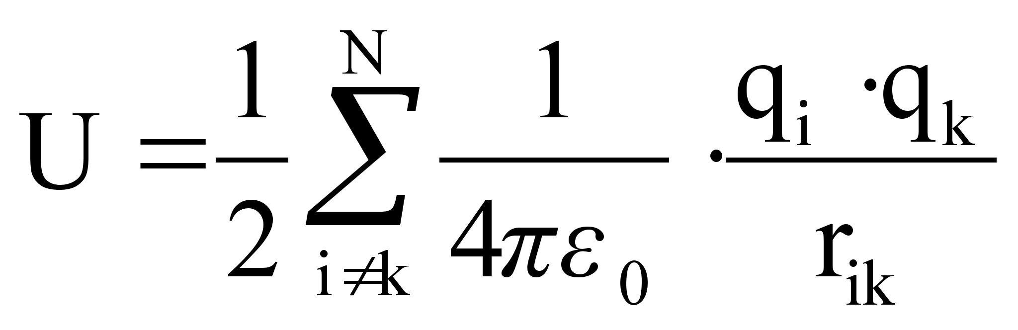 Потенциальная энергия взаимодействия двух точечных зарядов определяется по формуле: