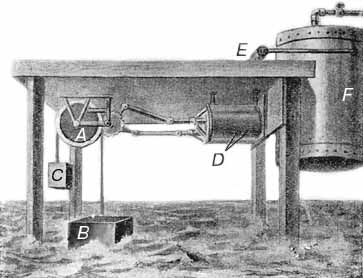 Н Представляется, что некоторые из предлагавшихся океанских энергетических установок могут быть реализованы, и стать рентабельными уже в настоящее время. ЭНЕРГИЯ ВОЛН И ТЕЧЕНИЙ.Ещё в начале XX века американский инженер Рансом сконструировал установку, использующую энергию волн для сжатия воздуха. Схема его установки показана на рисунке. Конструктором С. Солтером (S. Salter; Эдинбургский университет, Шотландия) предложен проект “Кивающая утка”. Поплавки, покачиваемые волнами, дают энергию стоимостью всего 2,6 пенса за 1 КВт\ч, что лишь незначительно выше стоимости электроэнергии, которая вырабатывается новейшими электростанциями, сжигающими газ (в Британии это - 2,5 пенса), и заметно ниже, чем дают АЭС (около 4,5 пенса за 1 КВт\ч). Машина Рансома Бакены и маяки, использующие энергию волн, уже усеяли прибрежные воды Японии. В течение многих лет бакены – свистки береговой охраны США действуют благодаря волновым колебаниям. Недавно группа ученых океанологов обратила внимание на тот факт, что Гольфстрим несет свои воды вблизи берегов Флориды со скоростью 5 миль в час. Идея использовать этот поток теплой воды была весьма заманчивой. Возможно ли это? Смогут ли гигантские турбины и подводные пропеллеры, напоминающие ветряные мельницы, генерировать электричество, извлекая энергию из течений и воли? "Смогут" - таково в 1974 году было заключение Комитета Мак-Артура, находящегося под эгидой Национального управления по исследованию океана и атмосферы в Майами (Флорида). Общее мнение заключалось в том, что имеют место определенные проблемы, но все они могут быть решены в случае выделения ассигнований, так как "в этом проекте нет ничего такого, что превышало бы возможности современной инженерной и технологической мысли". БИОХИМИЧЕСКАЯ ЭНЕРГИЯ.В океане существует замечательная среда для поддержания жизни, в состав которой входят питательные вещества, соли и другие минералы. В этой среде растворенный в воде кислород питает всех морских животных от самых маленьких до самых больших, от амебы до акулы. Растворенный углекислый газ точно так же поддерживает жизнь всех морских растений от одноклеточных диатомовых водорослей до достигающих высоты 200-300 футов (60-90метров) бурых водорослей. Морскому биологу нужно сделать лишь шаг вперед, чтобы перейти от восприятия океана как природной системы поддержания жизни к попытке начать на научной основе извлекать из этой системы энергию. При поддержке военно-морского флота США в середине 70-х годов группа специалистов в области исследования океана, морских инженеров и водолазов создала первую в мире океанскую энергетическую ферму на глубине 40 футов (12 метров) под залитой солнцем гладью Тихого океана вблизи города Сан-Клемент. Ферма была небольшая. По сути своей, все это было лишь экспериментом. На ферме выращивались гигантские калифорнийские бурые водоросли. По мнению директора проекта доктора Говарда А. Уилкокса, сотрудника Центра исследования морских и океанских систем в Сан-Диего (Калифорния), "до 50 % энергии этих водорослей может быть превращено в топливо - в природный газ метан. Океанские фермы будущего, выращивающие бурые водоросли на площади примерно 100 000 акров (40 000 га), смогут давать энергию, которой хватит, чтобы полностью удовлетворить потребности американского города с населением в 50 000 человек". В океа