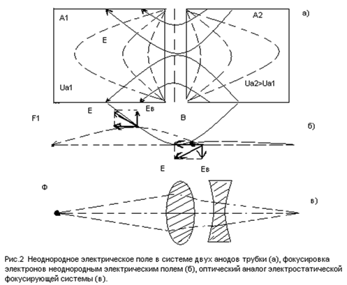 Таким образом, отклонение электрона равно: Выражая скорость V0 электрона через напряжение на аноде, получаем: