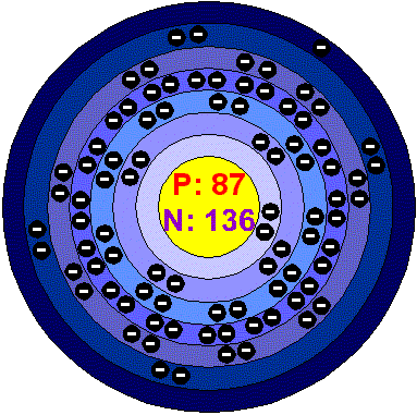Реферат: ФранцийРеферат: Франций1. Загальна характеристика 1.1. Фізичні властивості 1.2. Електронна конфігурація та будова атома 2. Історія відкриття 3. Методи отримання та дослідження 4. Хімічні властивості 5. Використання 6. Список використаної літератури Розділ 1. Загальна характеристикаФізичні властивості: Атомний номер: 87 Температура плавлення: 27.0 ° C (300.15 °K, 80.6 °F) Електронна конфігурація та будова атома: Електронна конфігурація: 1s22s22p63s23p63d104s2 4p6 4d104f145s25p65d106s26p67s1Будова атома: