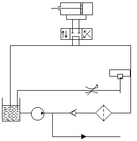 где ρ – плотность масла; Авых – площадь сливного отверстия золотника (диаметр сливного отверстия берётся из каталога). 4. Считая, что расход через дроссель редукционного клапана составляет 0,25 Qшn, по каталогу подбирается обратный клапан, обеспечивающий пропуск 1,25Qшn, и определяется его коэффи- циент сопротивления l о.к.(так же, как для золотникового распределителя). 5. Расчитывается фильтр (см. методические указания). 6. По расходам на участках сети подбираются диаметры трубопроводов. 7. Определяется давление в точке Д F3н – номинальная нагрузка, где ем-площадь сечения сливного трубопровода . 8. Находится давление в точке В системы Рв=Ра-Рав 9. Находится давление в точке С Рс=Ра-Рсд 10. По каталогу “Гидравлическое оборудование” подбирается насос, обеспечивающий давление не менее чем Ра “Подача насоса определяется условием Q3 = 0,25 * Q1 (cм. Пункт 11).Предпо- чтение следует отдавать насосам более простых конструкций. 11. Расчитывается редукционный клапан (см. методические указания) на расход Q1 = Qм – Qт и давления Р2 = Рс и Р1 = Р3 Q3 – паспортная подача насоса. Расход Q3 находится из соотношения Q3 = Q1 * Qм 12. Объём масляного бака системы ltr определяется по эмпирической формуле
