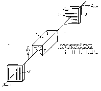 Рис. 7. Схема системы для оптической передачи информации: 1 - источник света; 2 - модулятор света; 3 - линия передач; 4 - фотоприемник; 5 - сигнал. При использовании полупроводниковых лазеров в качестве источников света внешний модулятор может быть исключен (напосредственная модуляция лазера с помощью возбуждающего тока в этом случае имеет преимущество). Задача оптической передачи информации является передача излучения от передатчика к приемнику, и тем самым решающее значение приобретает среда распространения сигнала. Свойства среды в основном определяют конструкцию и размеры всей системы передачи, включая выбор источника света и приемника. Передающие среды Следует различать передачу информации в следующих средах: земной атмосфере, линзовых световодах, оптических волноводах. Передача информации в земной атмосфере. Из-за геометрических потерь, обусловленных расходимостью излучения, при оптической передаче сигнала в вакууме принимаемая мощность на расстоянии R на длине волны l равна: