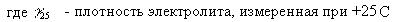 Если измерения проводились при температуре Т, отличной от +25°С, то необходимо откорректировать показания плотности по формуле: Омическое сопротивление батареи является суммой сопротивления электролита, сепараторов, активной массы, решеток и соединительных элементов . Под сопротивлением электролита подразумевается сопротивление той его части, которая находится между электродами. Таким образом, можно записать, что общее оммическое сопротивление батареи при разряде равно: