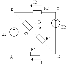 Для контура ( рис 5. ) второй закон Кирхгофа запишется в виде E1 - E2 = I1R1 - I2R2 +I3R3.