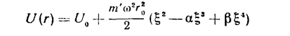 Приближение, соответствующее независимым гармоническим колебаниям и вращению молекулы, получается, если положить U(r)=U0+1/2m′ω²(r-r0)², и при интегрировании заменить медленно меняющийся множитель r² на г02, где r0—равновесное расстояние между обеими частицами; U0=U(r0). Чтобы учесть ангармоничность колебаний и их взаимодействие с вращением, пишем теперь