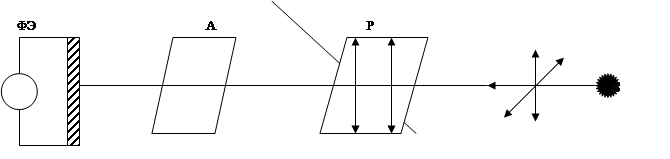 Мукадимаи назаряви Чи тавре ки маълум аст дар рушнои рушнои пурра поляризация шуда лапишхои вектори шадидияти майдони электри Мавч В дар 1 хамвори ба самти пахш гардидани мавчи электромагнити амуд ба вукуъ меояд. Дар рушноии кисман поляризацияшуда амплитудаи лаппишхои В дар яке аз хамворихои ба самти мавч амуд зиёдтару дар хамин гуна хамворихои дигар кам аст. Барои рушноии табии хоси кардани рушноии поляризацияшудаи аз усулои гуногун истифода мебаранд, ки бо чанде аз онхо шинос мешавем. Тафсири дастгох Асбоби зерин, ки дар он конуни Малос санчида мешавад, аз кисмхои зайл иборат мебошад: манбаъи рушнои, поляризатор РР анализатор АА: поляризатор дар гирди махвари Об метавонад давр занад (расми 5). Поляризатор гардиш дода, интенсивияти рушноии ба фотоэлемент афтандаро дучор тагйирот мегардонем. Фотоэлемент бо галавнометр пайваст мебошад. Вобаста ба интенсивияти рушнои дар главнометр кувваи чараёни электри (i) тагйир меёбад.