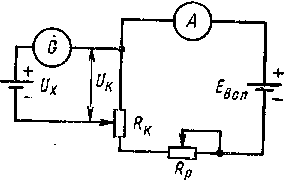 Рис. 7.2, Схема компенсации напряжений не связанных между собой, но противоположно направленных напряжений или ЭДС, либо двух раздельно регулируемых токов. Компенсационный метод используют для непосредственного сравнения напряжений или ЭДС, тока и косвенно для измерения других электрических, а также неэлектрических величин, преобразуемых в электрические. Применяют следующие схемы компенсации: а) напряжений или ЭДС (рис. 7.2); б) электрических токов (рис. 7.3).