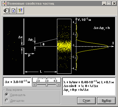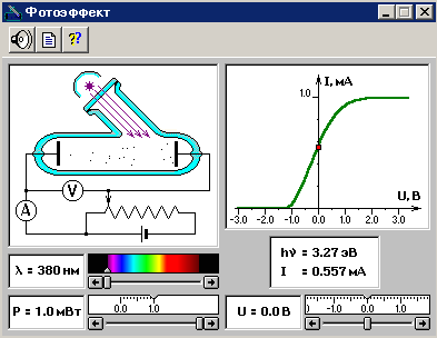 Цель обсуждения - показать, что поставить осмысленный опыт и получить результат совсем не просто и здесь есть чему поучиться. Возможно, даже имеет смысл объявить конкурс на самый интересный опыт. Пусть ребята вволю поэкспериментируют и как следует освоят интерфейс курса. Это вам сэкономит время на последующих уроках. Конечно, если вы смелый и решительный учитель, то можете сразу попытаться провести целый урок в компьютерном классе. Но, в таком случае, постарайтесь психологически подготовиться к тому, что урок будет скомкан или вообще сорван как по техническим причинам, так и по причинам того, что ни вы, ни ваши ученики к такому старту, возможно, окажетесь не готовы. Компьютерные модели для курса «Квантовая физика 11 класс». Краткое описание моделей, примеры теории и задач входящих в компьютерный курс Квантовой физики: