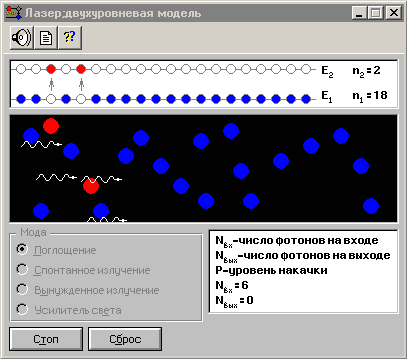 Рис. 1 Общий вид программы с открытой моделью «Лазер: двухуровневая модель»,задачей на эту тему и теорией по теме. Компьютерный курс назван "Открытой физикой", так как его модульный состав даёт большую свободу в выборе компьютерных моделей и соответствующих экспериментов. В дальнейшем предполагается разработка открытых версий на основе новейших компьютерных технологий. Это позволит создавать открытые образовательные продукты для сети Internet и дистанционного образования. В перспективе учитель сможет менять наполнение курса в зависимости от своих целей, создавать собственные пояснения и задания к компьютерным моделям, сохранять начальные условия запланированных экспериментов, вводить в курс новые задачи и вопросы. Компьютерный модели в школьном курсе физикиВ настоящее время количество компьютерных программ, предназначенных для изучения физики, исчисляется десятками, только лазерных дисков выпущено более десяти. Эти программы уже можно классифицировать в зависимости от вида их использования на уроках :