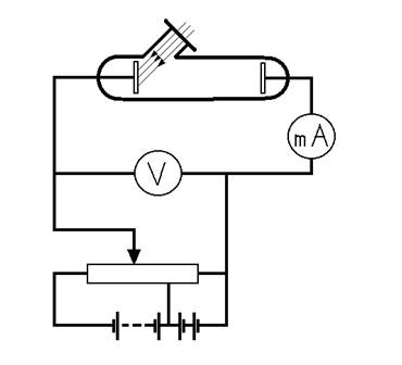 Количественные закономерности фотоэлектрического эффекта были установлены выдающимся русским физиком Александром Григорьевичем Столетовым (1839 – 1896) в 1888 – 1889гг. Используя вакуумный стеклянный баллон с двумя электродами (рис.2), он исследовал зависимость силы тока в баллоне от напряжения между электродами и условий освещения электрода.