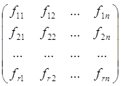 Приведенная система объединяет однородные линейные уравнения, и так как число ее уравнений равно числу неизвестных, она имеет бесконечное множество решений. Конкретные значения собственных векторов при этом можно найти, задавая произвольно по крайней мере величину одной компоненты каждого вектора. A – матрица факторного отображения, ее элементы arj – весовые коэффициенты. Вначале A имеет размерность m*m – по числу элементарных признаков Xj, затем в анализе остается r наиболее значимых компонент, r ≤ m. Вычисляют матрицу A по известным данным матрицы собственных чисел Λ и нормированных собственных векторов V по формуле A = VΛ1/2. F – матрица значений главных компонент размерностью r*n, F = A-1Z’. Эта матрица в общем виде записывается: