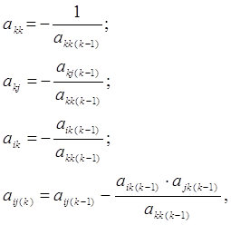 2 Описание программной реализации Программа для реализации метода главных компонент была написана на языке Turbo Pascal 7.0. Все вычисления выполнены в последовательности, представленной на рисунке 1.1. Обозначения программных переменных и массивов по возможности соответствуют изложенным выше. Программа является в достаточной степени универсальной, т.к. приспособлена для обработки массивов данных любой размерности (их размер ограничен только объемом доступной памяти). Однако в программе не предусмотрен ввод данных с клавиатуры. Размерность массивов задана константами, а массив исходных данных инициализируется также в теле программы. При необходимости ввода других данных можно легко скорректировать исходный текст программы. Отдельной процедурой в программе описан вывод на экран матрицы m*m. В программе часто приходится проделывать эту операцию, поэтому она оформлена как процедура out. Первой процедурой является центрирование и нормирование исходных данных. Оно выполняется в соответствии с описанными выше формулами. Далее запрограммировано нахождение коэффициентов характеристического уравнения для корреляционной матрицы R. Оно производится в соответствии с рекуррентными соотношениями Фаддеева, т.е по следу матриц, производных из R, по формулам: Ai-1=ABi-2; Pi-1=1/(m-1)trAi-1; Bi-1=Ai-1-Pi-1E; i=1,2..m. (2.1) После вычисления рекуррентных соотношений находится характеристический полином: Pm(λ)= λm - P1 λm-1 - P2 λm-2 -…- Pm. (2.2) Известно, что при m > 4 (2.2) не имеет общего решения. Однако мы знаем, что это уравнение имеет все вещественные корни, и что их число равно m. Для их нахождения используется итерационный метод Ньютона, поскольку исследуемая функция – полином и нет затруднений в вычислении ее производной. Итерационная формула Ньютона для i-й точки имеет вид: где j – номер итерации. Далее в соответствии с (1.1) находим собственные векторы матрицы R. Для решения систем уравнений применялся метод Гаусса. Однако предварительно необходимо было исключить одно неизвестное. Для этого переменным umj были присвоены единичные значения, последний столбец перенесен в правую часть с обратным знаком, а последнее уравнение исключено из рассмотрения. После получения матрицы собственных векторов U было проведено ее нормирование, в результате чего была получена матрица нормированных собственных векторов V. Затем вычисляется матрица факторного отбражения A в соответствии с правилами умножения матриц. Далее находится матрица, обратная к A, методом m-кратного пересчета элементов [3,с.358] по рекуррентным формулам: где k – номер итерации, k=1..m. На заключительном этапе A-1 = -A(k). После нахождения матрицы, обратной A, находим матрицу F – матрицу факторного отображения и выводим ее на экран в транспонированном виде в соответствии с (1.2). На этом расчеты по методу главных компонент завершены. ЗАКЛЮЧЕНИЕВ данной курсовой работе была построена математическая модель и программная реализация метода главных компонент. Следует отметить, что в работе не была рассмотрена методика отсева несущественных факторов, и поэтому результирующая модель, выдаваемая программой на экран, содержит число компонент, равное числу исходных элементарных признаков m. К достоинствам разработанной программы можно отнести то, что она может работать с массивами исходных данных достаточно большой размерности. ЛИТЕРАТУРА1