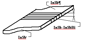 Рис. 2. Схема лавинного фотодиода на основе сверхрешетки InSb-InSbBi При этом снимается проблема программированного изменения состава твердого раствора на малых длинах (~ 0,1 мкм). Градиентный слой уменьшает величину скачка в валентной зоне так, что ∆Е → 0 и длинновременная составляющая релаксации фототока τp → 0. Быстродействие при этом может сокращаться до значений ~ 1 нс. Структура такого лавинного фотодиода представлена на рис. 2. Топологически такой прибор приводится к структуре фотоприемника с растровыми электродами, изоляция между которыми выполнена обратносмещенными p-n-переходами. Таким образом, в технологии фотоприемных устройств инфракрасного диапазона (спектры фотолюминесценции имеют максимум вблизи 8,7 мкм) могут быть перспективны структуры типа «квантовой ямы». 3.5 Принципиальная схема
