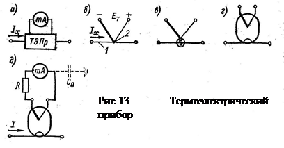 и магнитоэлектрического микро- или миллиамперметра (рис.14, а). В качестве